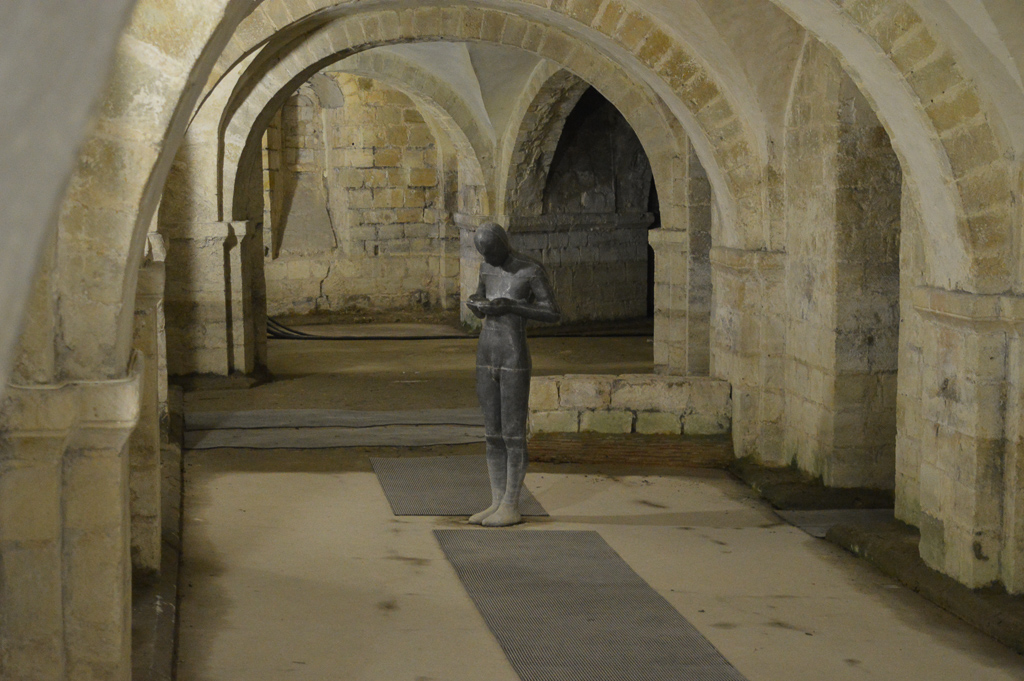 It’s this high water table that inspired artist Antony Gormley. In the Cathedral’s crypt, a lifesize man stands contemplating the water. The crypt regularly floods and will obscure the man. You can see the watermarks on the walls.