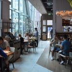 Housed in one of London’s newest glass monoliths, Aster is bright and airy. The large champagne bar dominates the room, with marble table tops and brass details – that ever-so-now ‘lux look’, it would be a cool place for after-work date. And as the Evening Standard said, ‘an overhead hanging clock (similar to that in Grand Central) sets the bustling brasserie tone.’