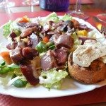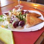 As we trooped in we realised that we’d found a right treat – Montaigu de Quercy’s very own Morrocan. Now that’s something you can’t get much of in the Cotswolds. We settled down to a splendid three-course banquet that refuelled our tired beings. Dad and I had the unusual cured duck salad for starters, whilst Tom and Mum tucked into a salmon samosa.