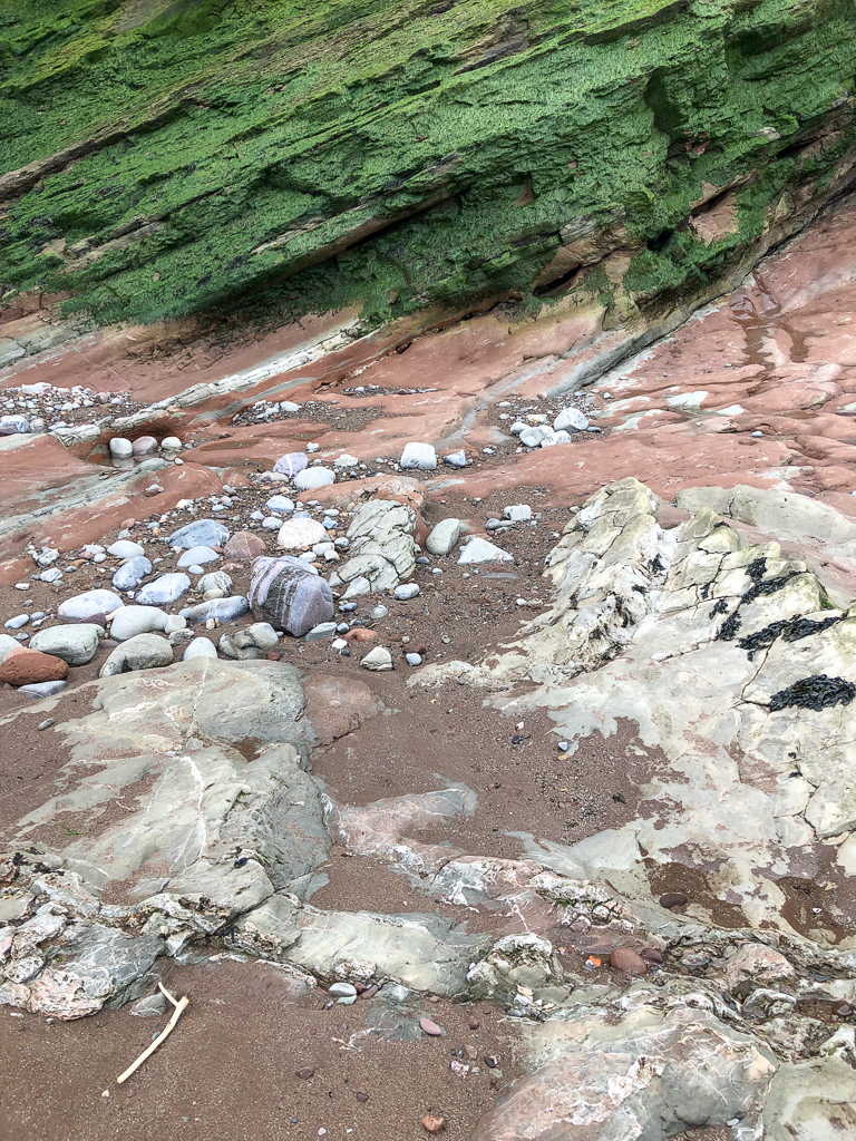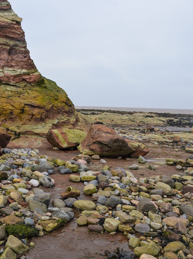 We took the coastal path that starts from the tip of quayside up to Splash Point and then along the cliffs towards Helwell Bay (also known as Fossil Beach). About a kilometre along, after the Helwell car park and across the field, there’s a set of steps leading down to the beach.