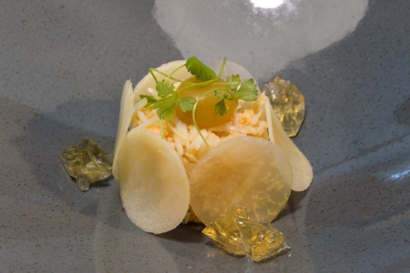 Salcombe crab with kohlrabi, fennel puree and apple puree (£11)