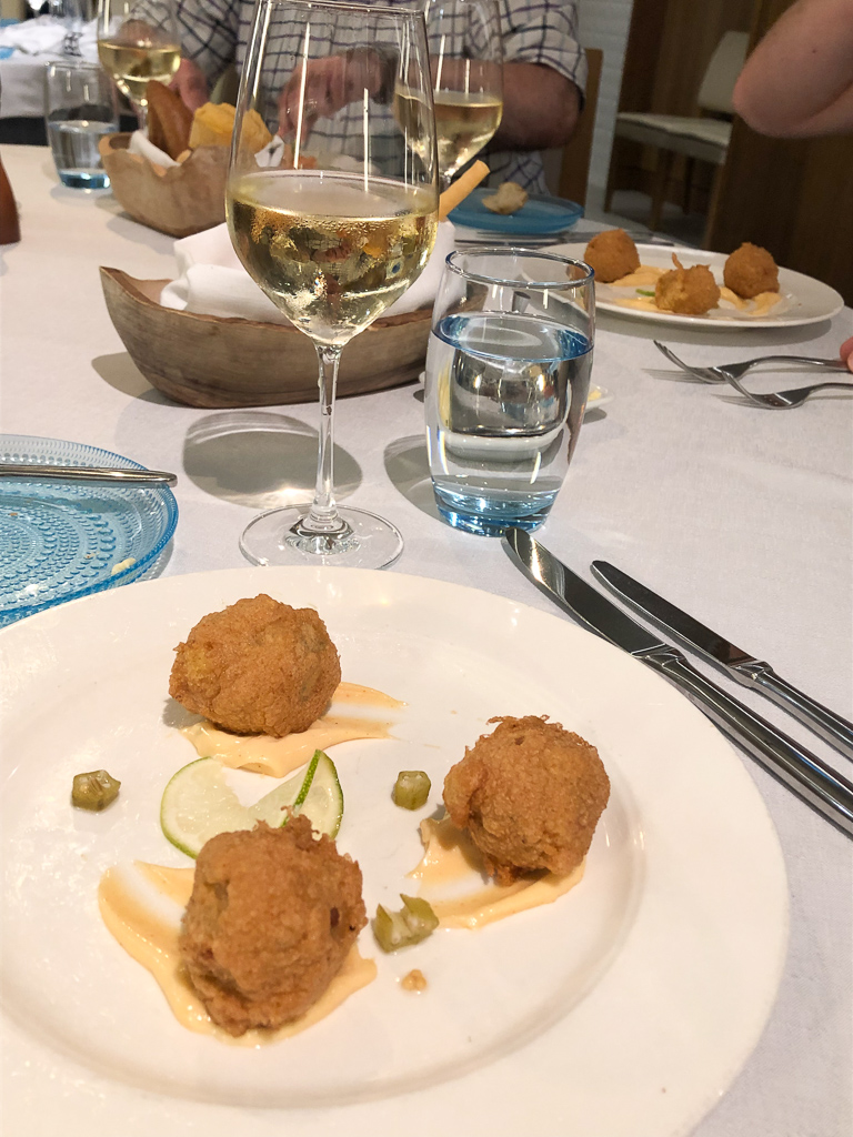 The main restaurant on the Viking Sea would often feature a destination menu, a sample of local fare. In Barbados, we tried Bajan fish cakes, breaded flying fish and ‘conkies’ – a pumpkin-coconut cake steamed in a banana leaf.