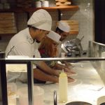 In Oxford, the Italian chefs shout across the hubbub at waiting staff desperately attempting to get pizzas out from the floured benches to feed many hungry mouths. Our masterclass took over one corner with three long tables filled with foodies enthusiasts with salivating taste buds. We were a touch late, so we squeezed on the end of a table – luckily for us the wine tasting.