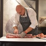 As this was opening night, we were treated to a special celebration of all things steak. First with a butchery demonstration from master butchers at Fairfax Meadow. Here our master craftsman made mince meat (pun intended!) of the large cuts on his table, deftly cutting different joints in half an hour. He explained that only the very best steak makes its way to the chefs at M&C restaurants – in fact, only four per cent of each animal would ever see the grill. I was a bit concerned about what happened to the rest of the carcass, but apparently, its graded differently and sent to other establishments. Each steak is also hand cut – never by laser – which means that each imperfection is singled out and discarded – no grizzle here.