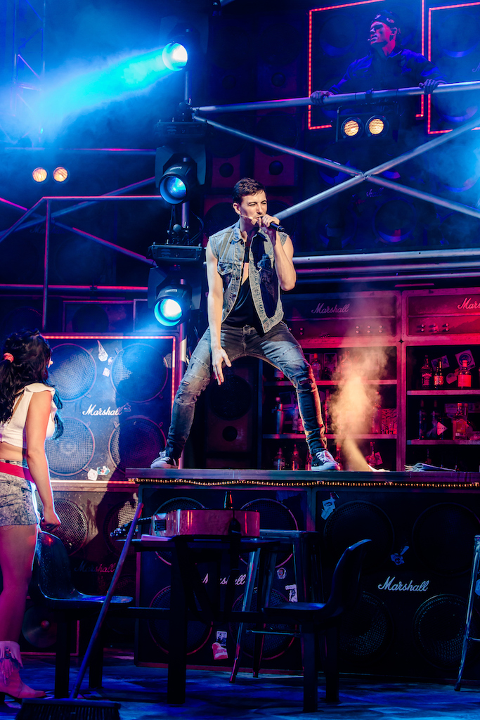 I’ve seen the film but already knew that the story would work so much better on stage. It’s got the two fame-hungry teenagers who head to LA, one to make it as a rock star, the other an actress. The pair meet whilst working as a waitress and janitor in the fictional, fabled ‘Bourbon Lounge’ – the birthplace to many a rock megastar. And so we see their rise and fall in the bid to make it big.